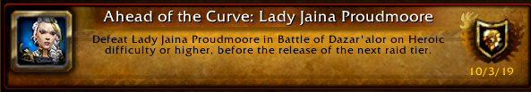 Le 10 mars 2019, l’objectif fut atteint avec la chute de Jaina en mode Héroïque : le tout premier Curve de notre roster raid !
